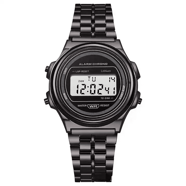 Orë dore për meshkuj dhe femra, model vintage. Ora tregon kohën, datën dhe ka alarm. Ora funksionon me bateri dhe ka rezistencë ndaj ujit.