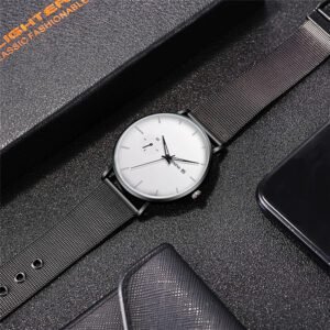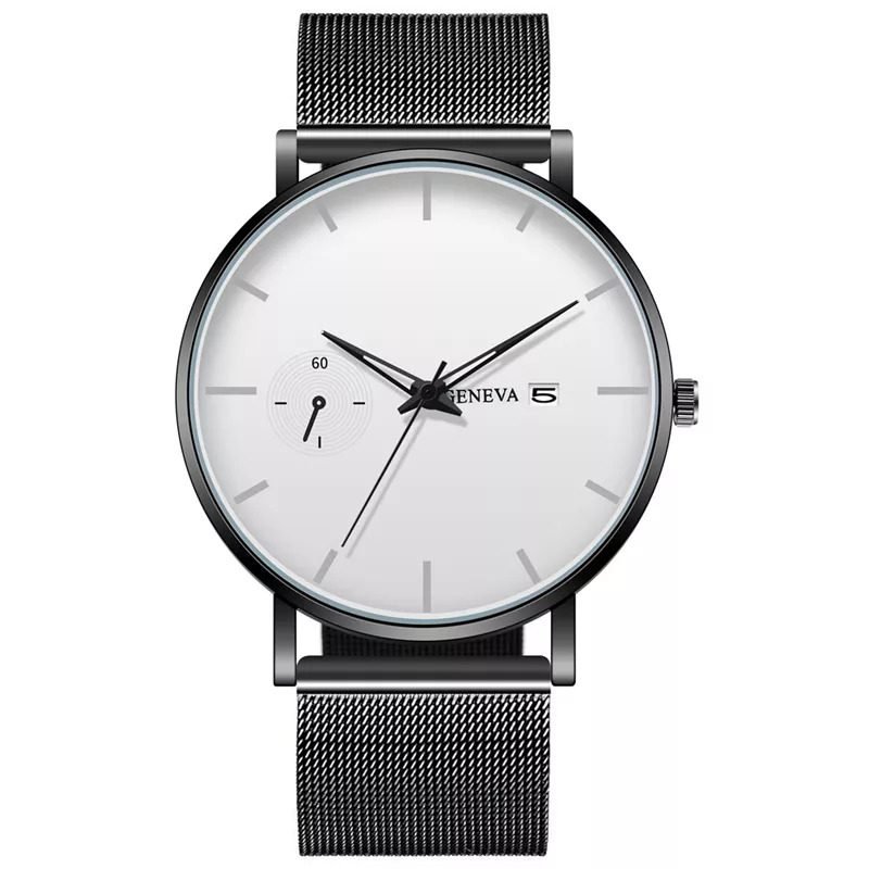 Orë dore, me bateri. Dizajn unik elegant me rrip metali të zezë dhe me fushë numrash të bardhë.