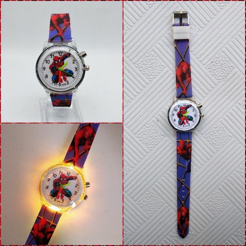 Orë dore për fëmijë me Spiderman. Ora funksionon me bateri, e cila është e përfshirë. Ngjyrë kaltër.