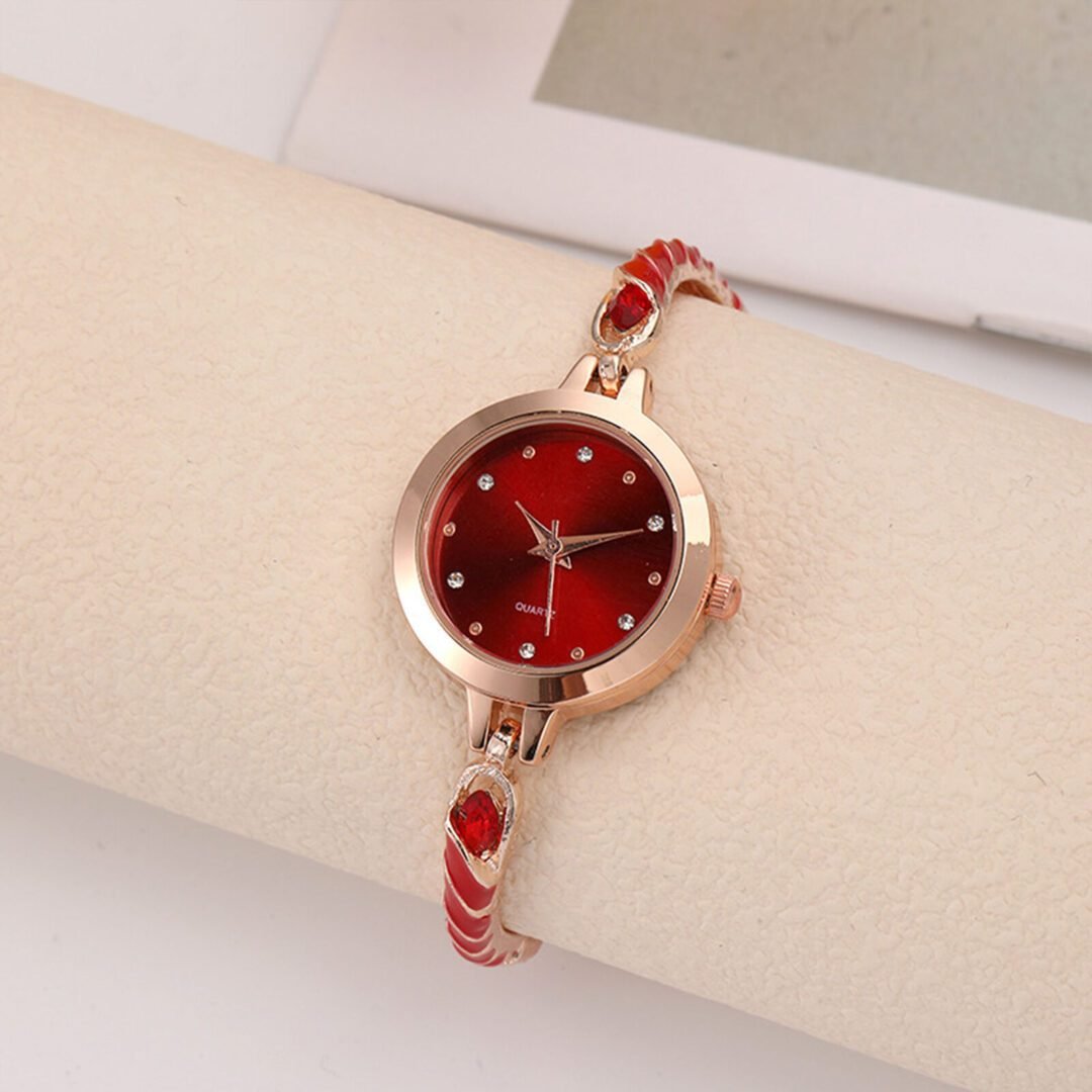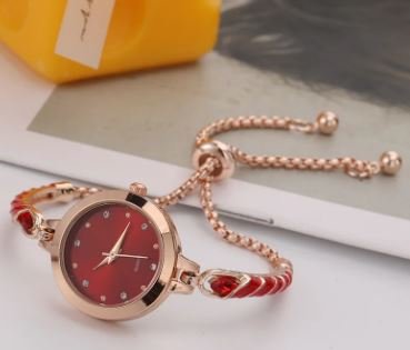 Kjo orë elegante karakterizohet nga një fushë e kuqe dhe nga një rrip zingjiror me gurë sintetik po ashtu në ngjyrë të kuqe. Nga jashtë karakterizohet nga një kornizë e artë. Akrepat dhe indekset janë të thjeshta dhe të pastra, duke i dhënë një pamje të rafinuar dhe të sofistikuar.