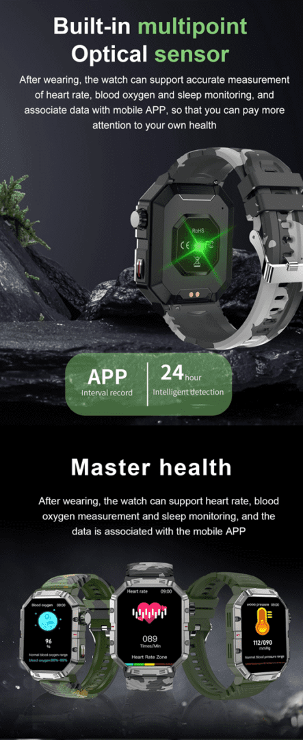 Monitorues i rrahjeve të zemrës, monitor i gjumit, monitor i oksigjenit në gjak.