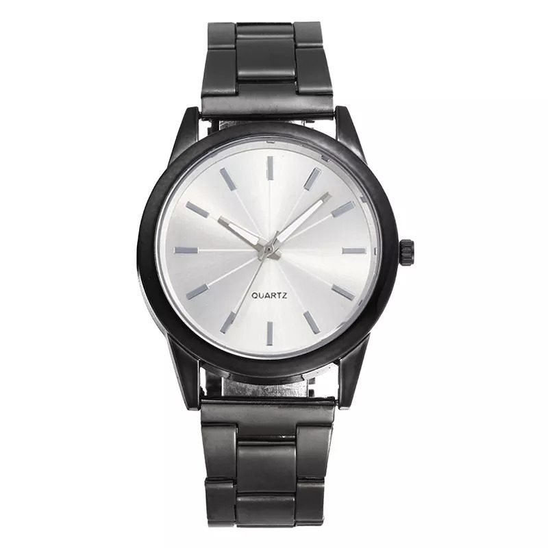 Orë dore, me bateri. Dizajn unik elegant me rrip metali të zi dhe me fushë numrash të bardhë.