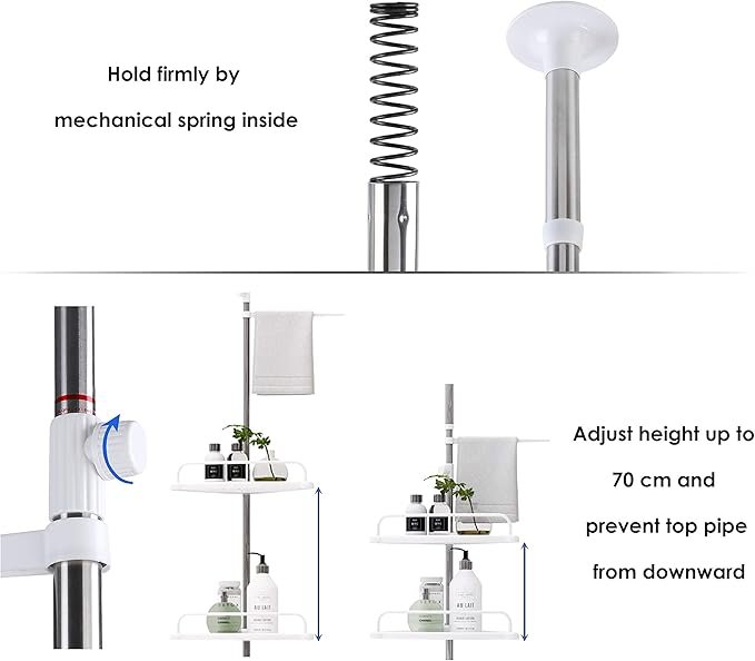 Produkt me cilësi të lartë: Tabaka e bardhë është bërë nga plastika e cilësisë së lartë, e papërshkueshme nga uji dhe ndryshku dhe mund të përdoret për një kohë të gjatë. Rafti ka një susta brenda që parandalon rënien e tubit të sipërm, ka qëndrueshmëri jashtëzakonisht të lartë dhe është një zgjedhje e shkëlqyer për raftet e banjës.