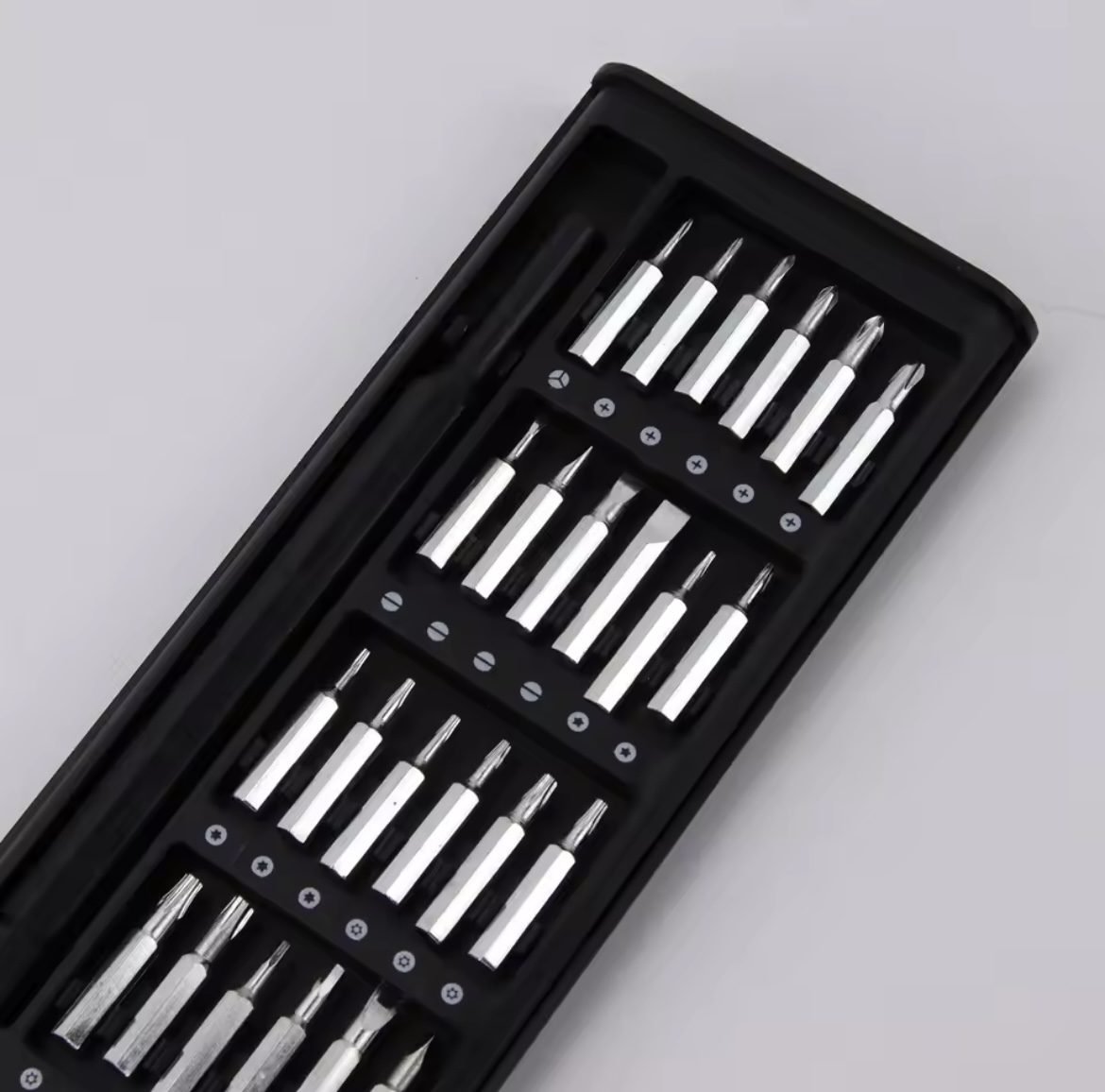 Ky set profesional kaçavidash është ideal për punime precize dhe riparime teknike në telefona, laptopë, ora, syze dhe pajisje të tjera elektronike. I pajisur me dorezë metalike dhe 24 kokëza me forma dhe madhësi të ndryshme, ky set ofron cilësi dhe efikasitet maksimal.