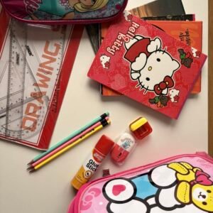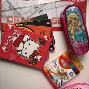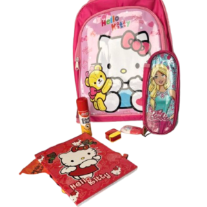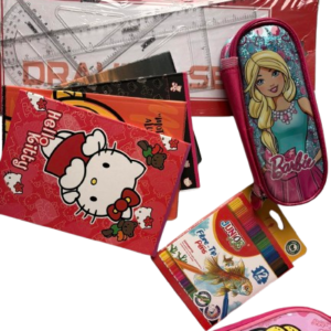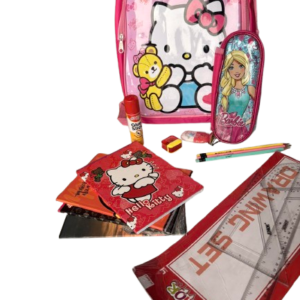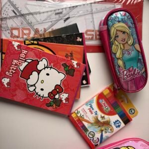 Set shkollor për fëmijë me dizajn Hello Kitty, në ngjyrë rozë tërheqëse dhe pamje shumë të ëmbël. Seti përfshin një çantë shpine praktike dhe të qëndrueshme, ideale për shkollë dhe përdorim të përditshëm. Brenda çantës gjenden të gjitha mjetet bazë shkollore: vizore, lapsa, fletore, gomë, mprehëse për lapsa, glue stick, si dhe një çantë e vogël Barbie për ruajtjen e mjeteve të vogla. Rripat e çantës janë të rregullueshëm për rehati maksimale. Set ideal për fëmijë që duan stil lozonjar dhe praktik në një paketë të vetme.