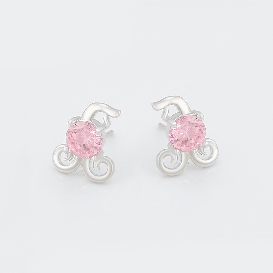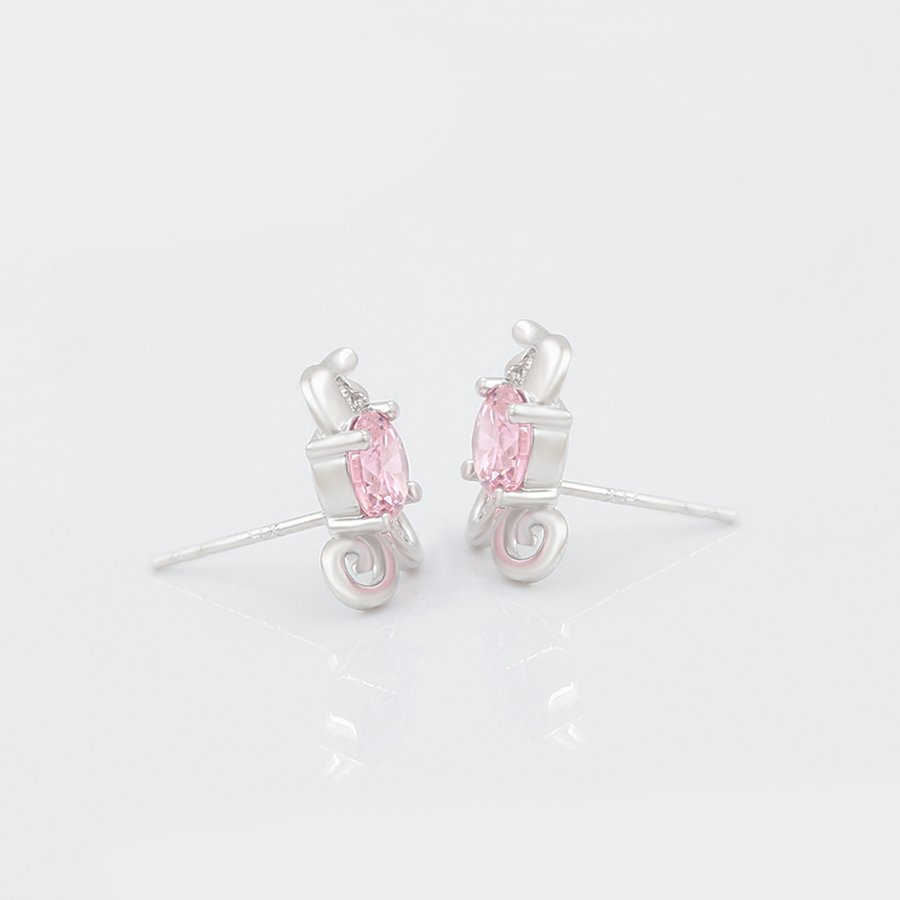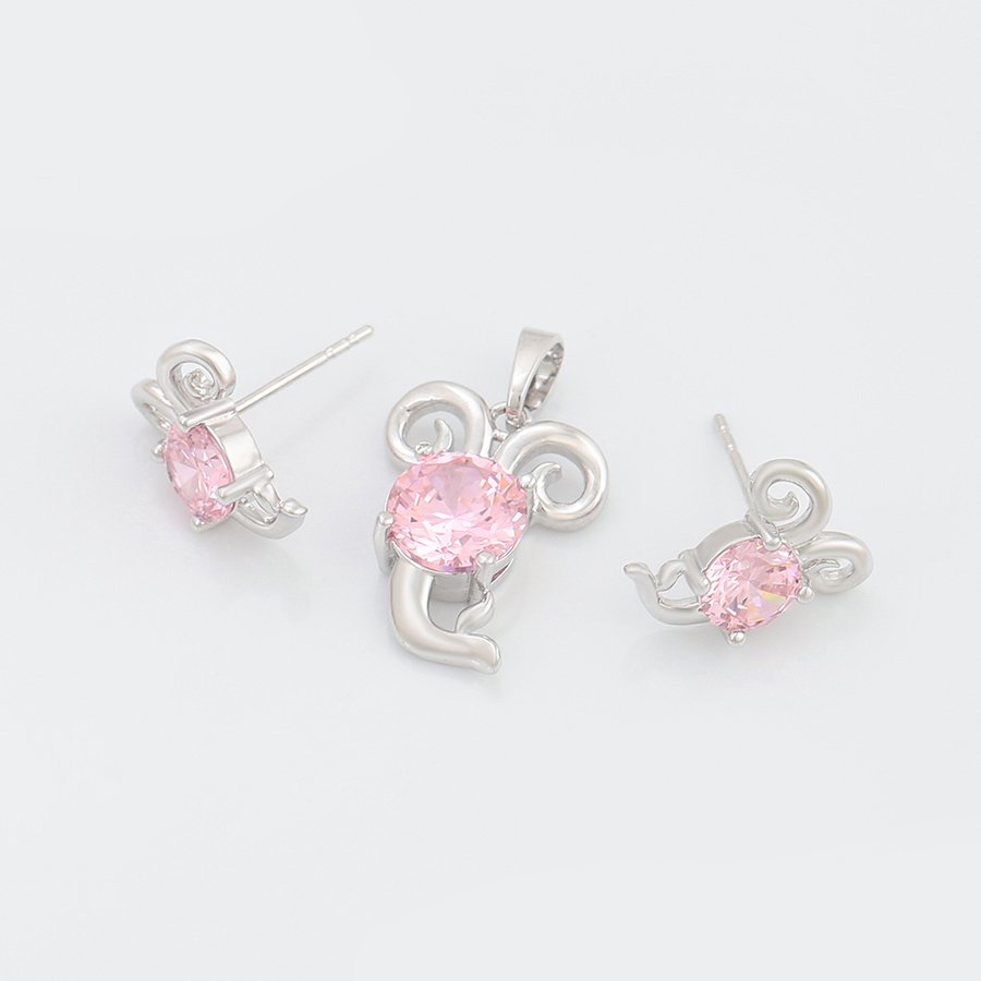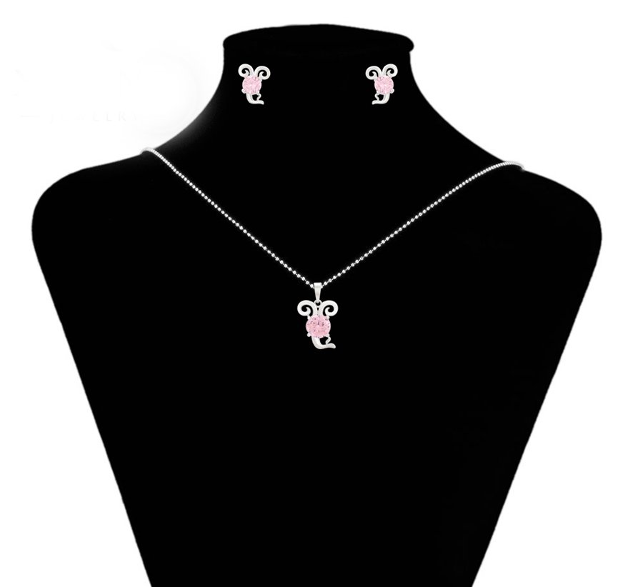 Set i përbërë nga një palë vathë dhe një varëse të flakëruar në argjend me gurë ngjyrë rozë.