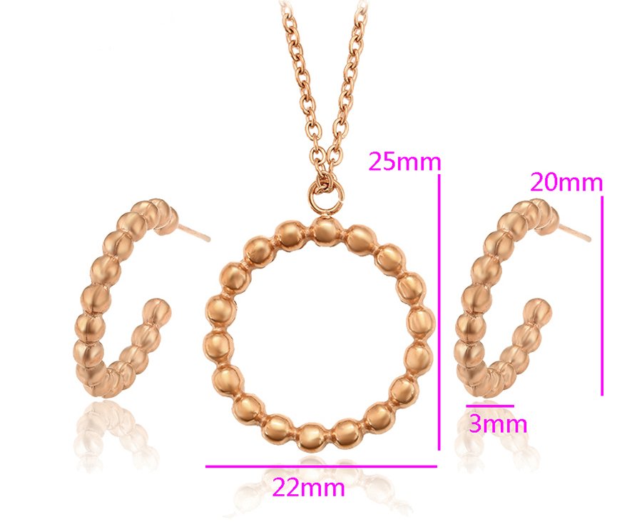 Set i përbërë nga një palë vathë dhe një qafore të ptaruara në ar Rozë. Elegante me dizajn modern.