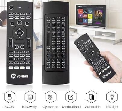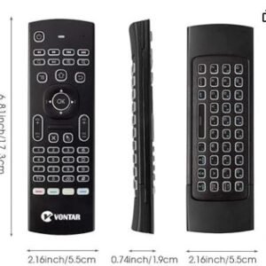Kjo telekomandë multifunksionale wireless kombinon lehtësinë e një telekomande tradicionale me teknologjitë më të avancuara, përfshirë air mouse dhe tastierën e integruar QWERTY. E projektuar për të ofruar një përvojë të pandërprerë në kontrollimin e televizorëve të zgjuar, kutive Android TV, PC-ve dhe pajisjeve të tjera, kjo telekomandë ofron një ndërfaqe miqësore për përdoruesit dhe navigim të saktë përmes funksioneve të saj të avancuara.